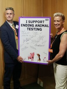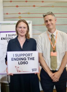 Many people will be familiar with the LD50 – a lethal dose test which involves giving groups of animals increasing doses of a substance until half of them are dead. With the government’s roadmap to ‘phasing out animal testing’ due later this year, our long-running campaign to ban the LD50, and all animal experiments is at a critical stage.  I’m delighted to say that our parliamentary event, hosted by Carolyn Harris MP,  was so well-attended, it was almost ‘standing room only’.