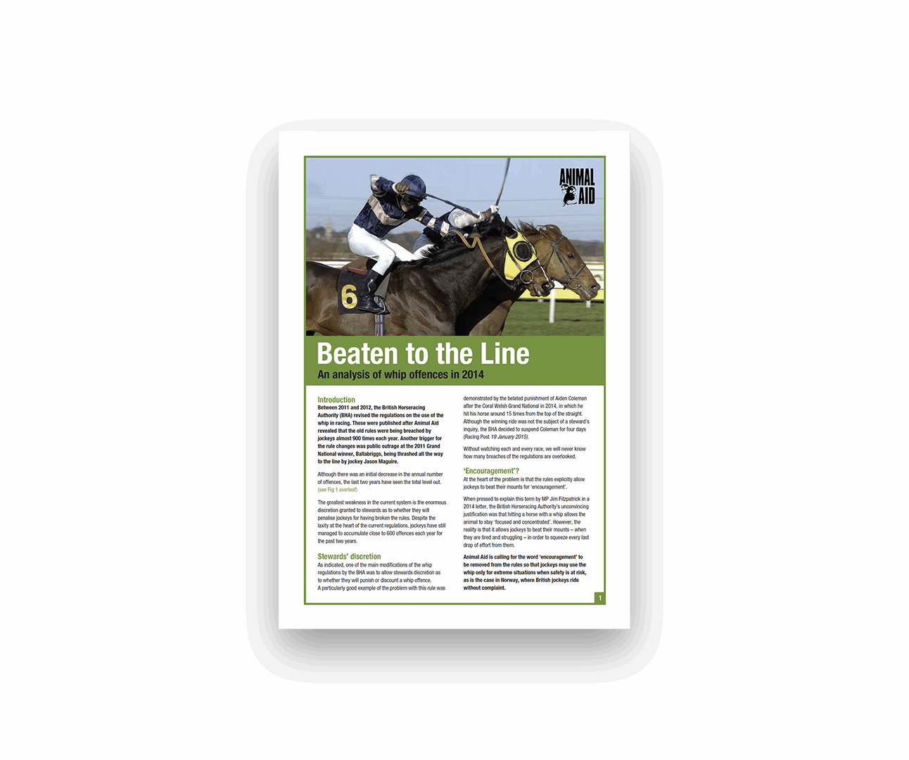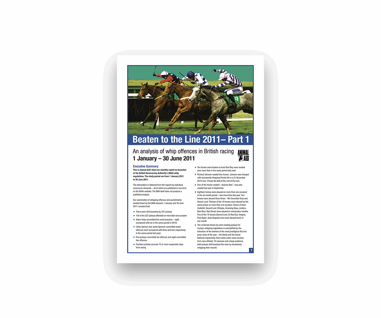 This 12-page report chronicles whip offences in British horse racing and demonstrates the industry's failure to protect horses....