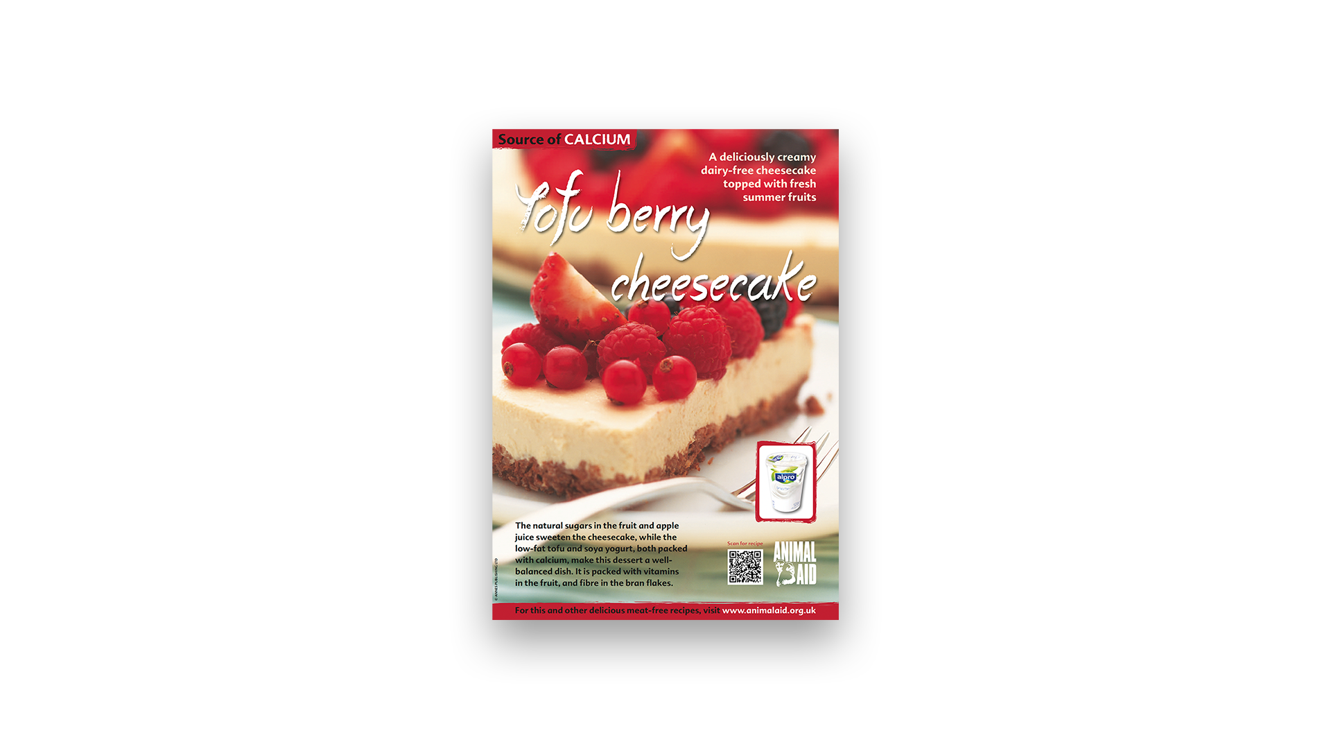 Poster featuring tofu berry cheesecake that includes soya yogurt as a rich source of calcium.