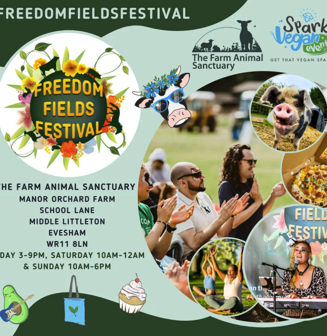 Sparkle Vegan Events are partnering with The Farm Animal Sanctuary to bring you an on-site Vegan Village at Freedom Fields Festival...