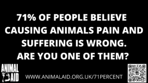 A recent ‘One Poll’, commissioned by Animal Aid, has shown that the majority of people believe that it is always wrong to cause animals pain and suffering.
