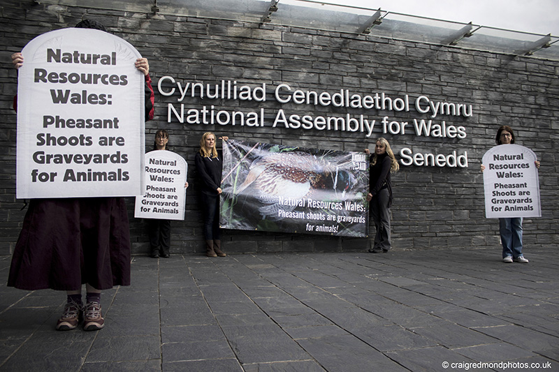 Animal Aid installed a 'graveyard' for animals at the Welsh Assembly in Cardiff on Saturday 24 September, calling for an end to pheasant shooting in the national forest.
