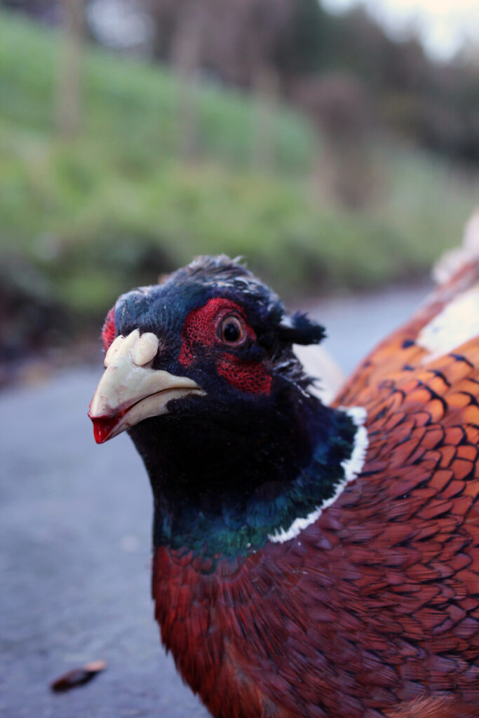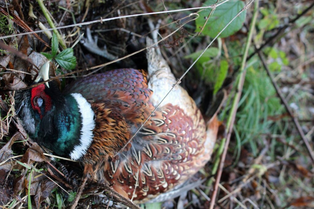The life of this male pheasant – who was hit by a car – is ebbing away. The bird was put out of his misery.