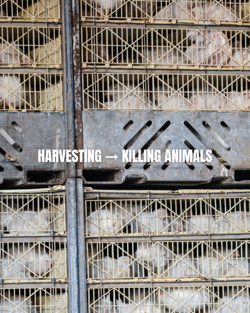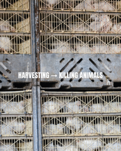 Harvesting ⟶ borrowed from crop farming to sanitise the killing of animals