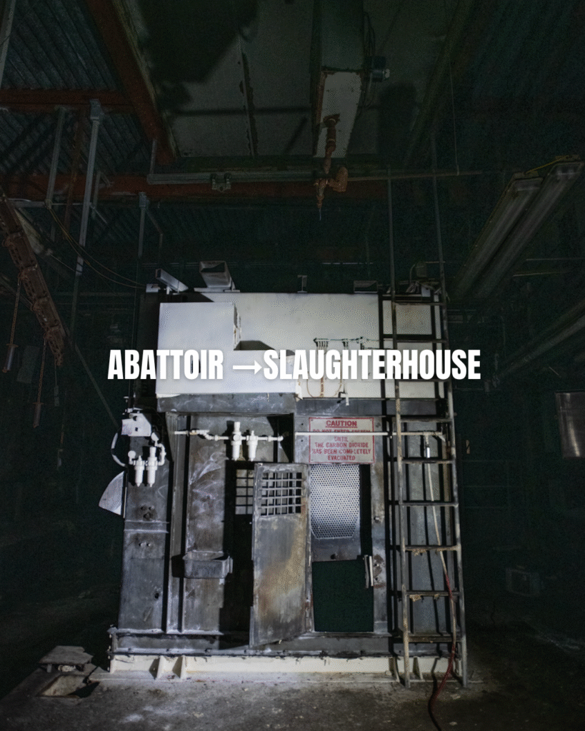 Abattoir ⟶ used to soften the reality of slaughterhouses