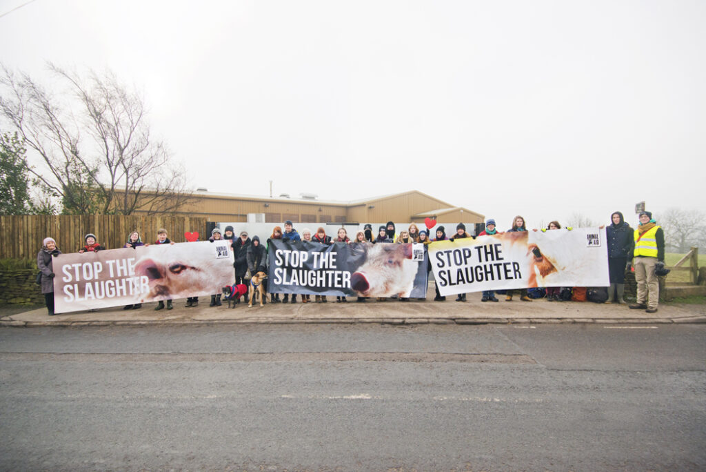 Around 30 campaigners joined a Valentine’s Day vigil at a controversial Sheffield slaughterhouse, where terrible animal suffering has recently been exposed. During the vigil, campaigners made a gruesome discovery.