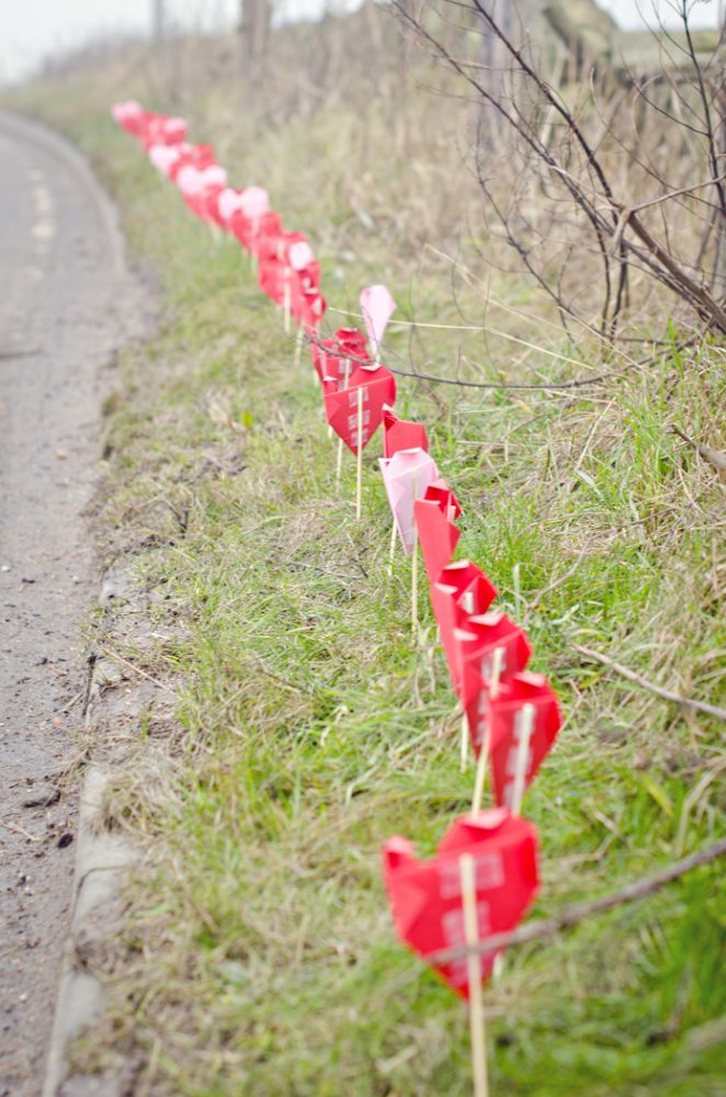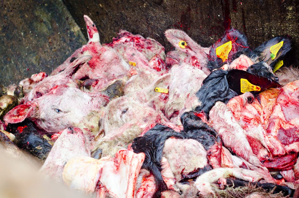 Yesterday, around 30 campaigners from Animal Aid and the Save Movement held origami hearts and banners reading “Stop The Slaughter” during a peaceful Valentine’s Day vigil outside the controversial N Bramall & Sons Ltd slaughterhouse at Oxspring, near Sheffield. Attendees were left shocked, however, when they made a grisly discovery: an open-air skip filled with dozens of severed sheep and cow heads, only meters away from a popular public footpath. Organisers have questioned whether the disposal of animal parts in such a way is in breach of regulations.