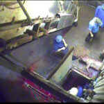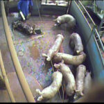 An additional worrying episode showed an apparently dead pig being dragged into the stun pen by a pole in her mouth. She was not stunned but she was shackled, hoisted and had her throat cut on the slaughter line. How this animal died, what she had been suffering from and where her meat ended up remain unknown.